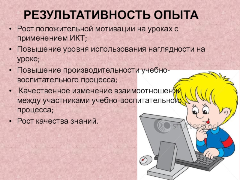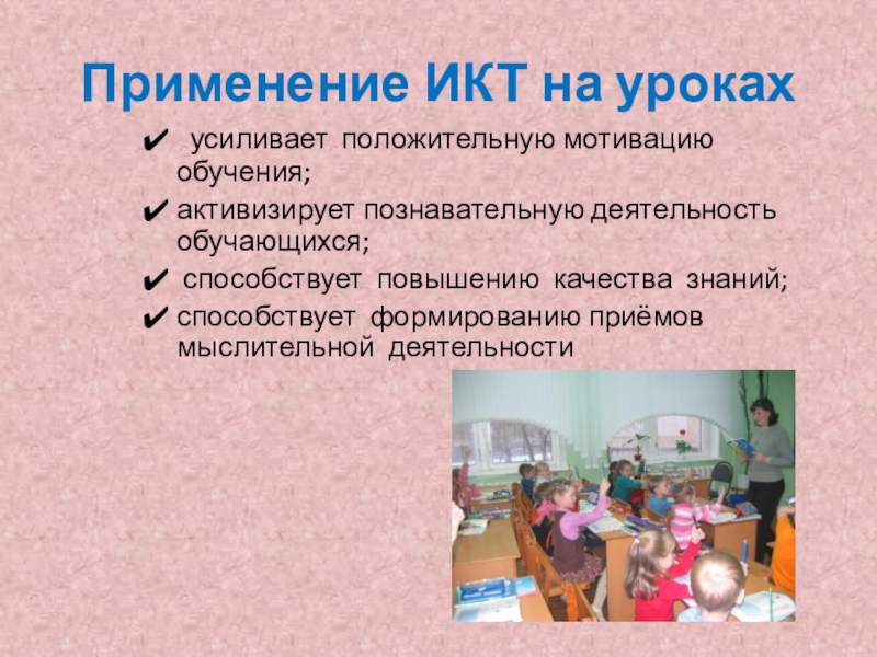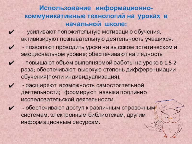 Слайд 7Использование информационно-коммуникативные технологий на уроках в начальной школе: