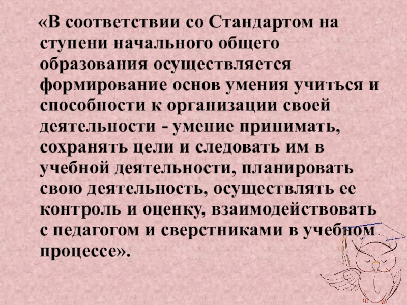 Слайд 5 «В соответствии со Стандартом на ступени начального общего образования