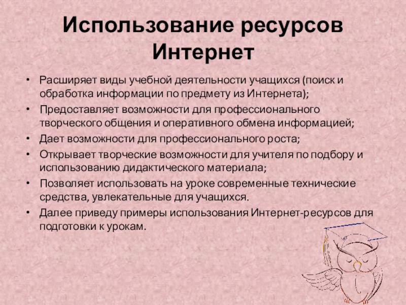Расширяет виды учебной деятельности учащихся (поиск и обработка информации
