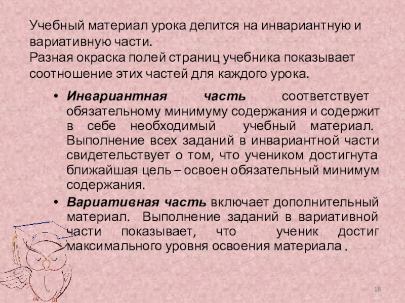 Слайд 18Учебный материал урока делится на инвариантную и вариативную части.
