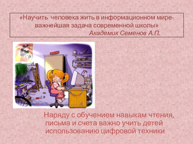 Слайд 2«Научить человека жить в информационном мире- важнейшая задача современной школы»