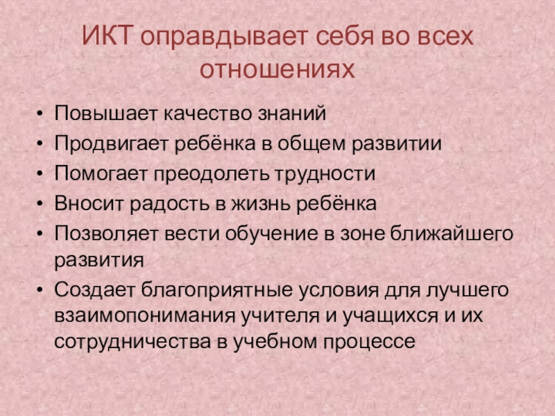 Слайд 28ИКТ оправдывает себя во всех отношениях
