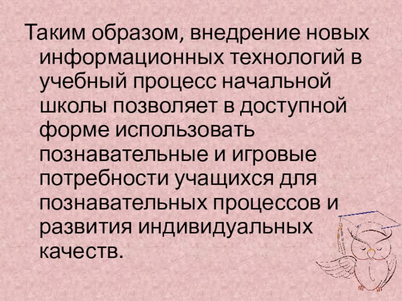Слайд 27Таким образом, внедрение новых информационных технологий в учебный процесс начальной школы