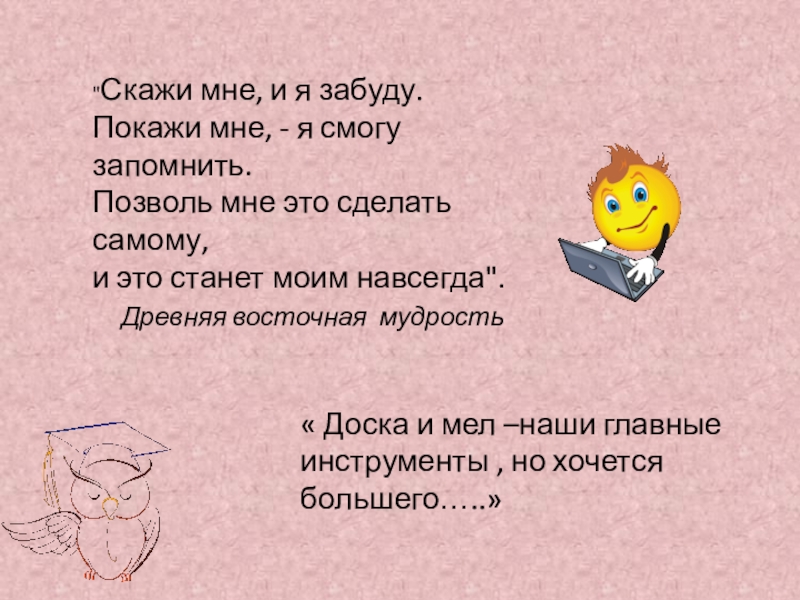 Слайд 3« Доска и мел –наши главные инструменты , но хочется большего…..»