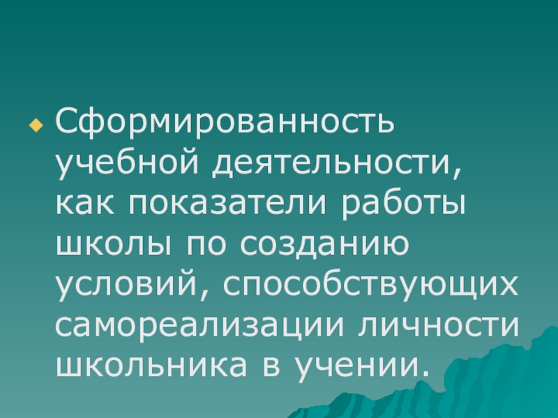 Сформированность учебной деятельности, как показатели работы школы по созданию условий, способствующих самореализации личности школьника в учении.