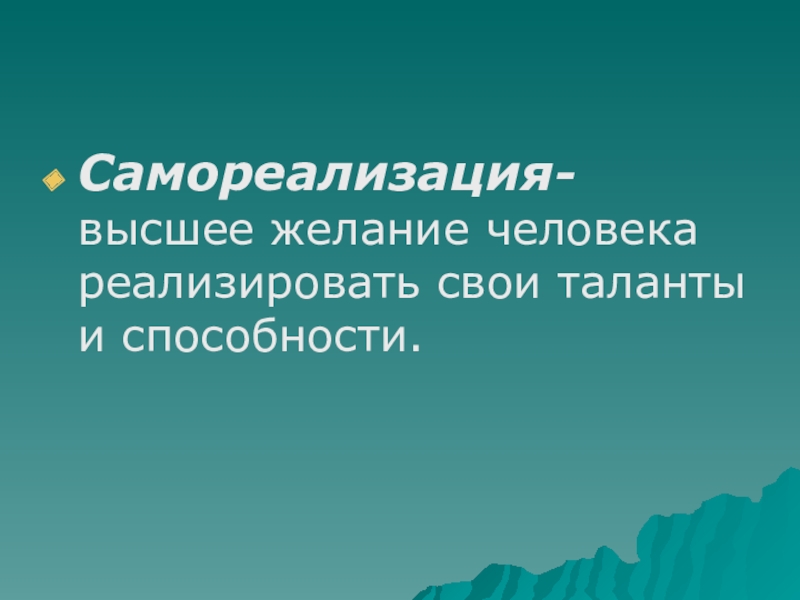 Самореализация-высшее желание человека реализировать свои таланты и способности.