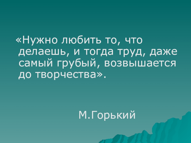 «Нужно любить то, что делаешь, и тогда труд, даже самый грубый, возвышается до творчества». 							М.Горький