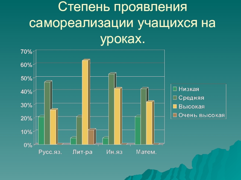 Слайд 9Степень проявления самореализации учащихся на уроках.