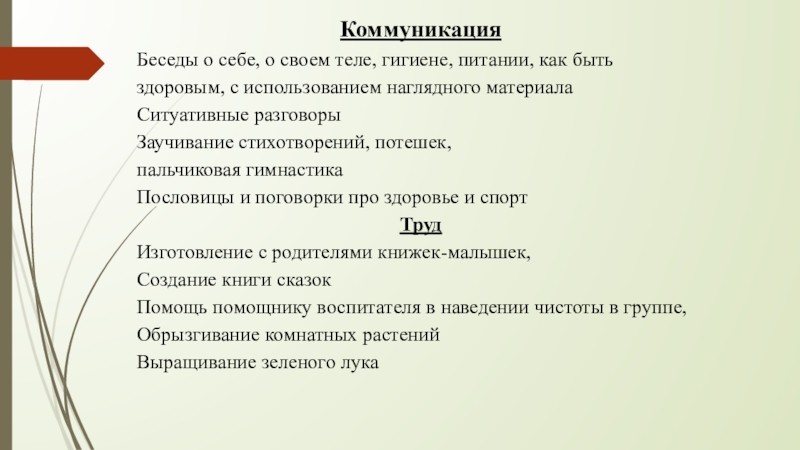 Беседы о себе, о своем теле, гигиене, питании, как быть здоровым,