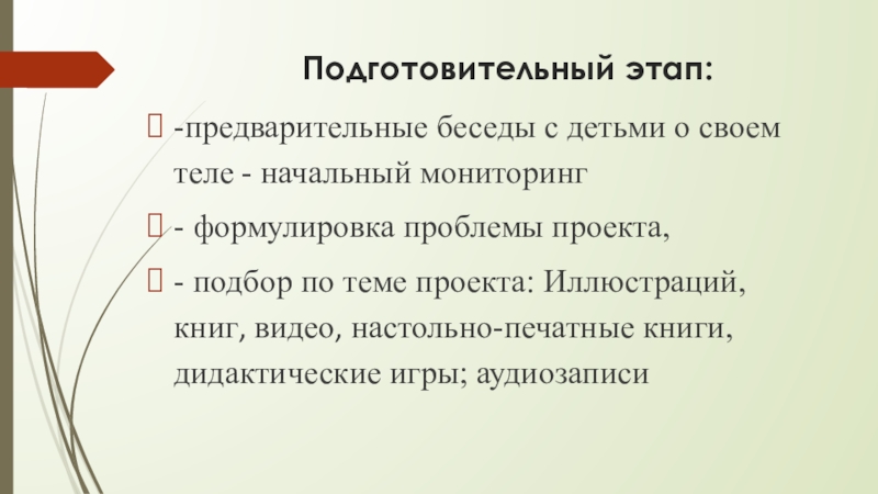 - подбор по теме проекта: Иллюстраций, книг, видео, настольно-печатные книги, дидактические игры; аудиозаписи