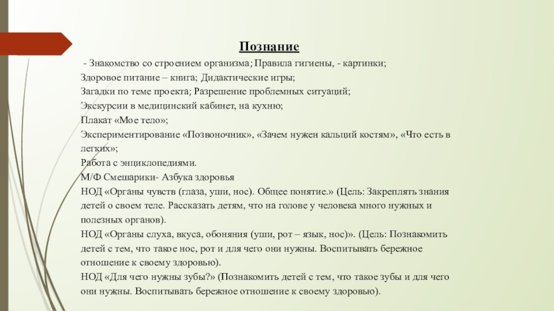 о своем теле, формировать любовь к жизни, чувство радости существования).