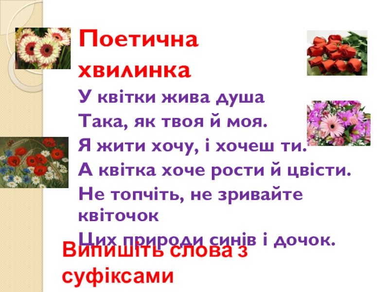 Випишіть слова з суфіксами