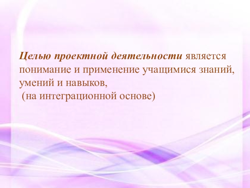 Целью проектной деятельности является понимание и применение учащимися знаний, умений и навыков,  (на интеграционной основе)