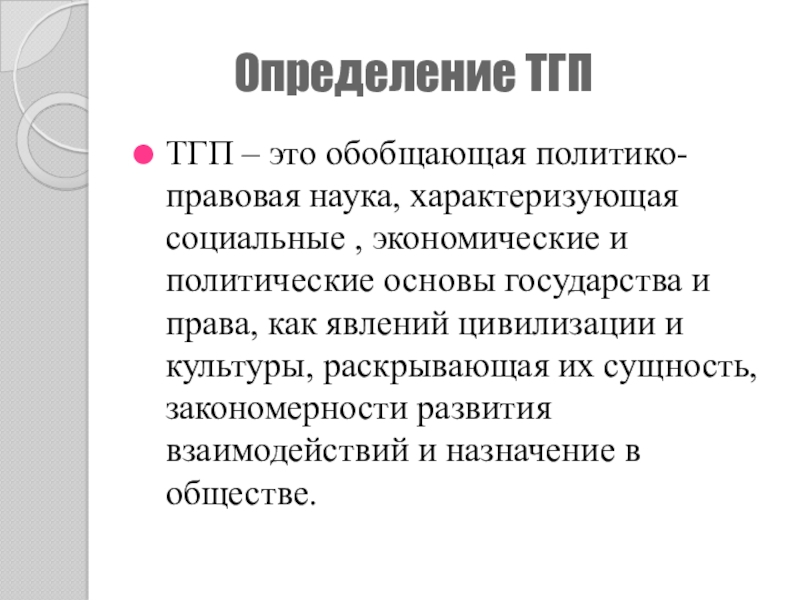 Функции ТГП- это основные направления воздействия на общественные отношения.