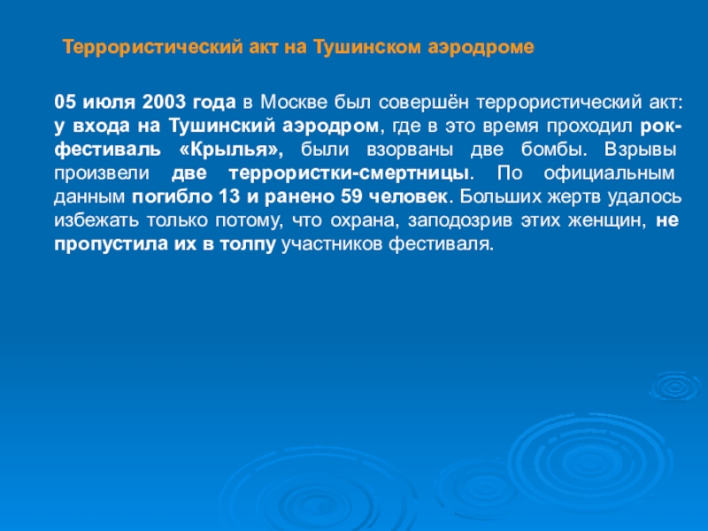 Слайд 4 Террористический акт на Тушинском аэродроме