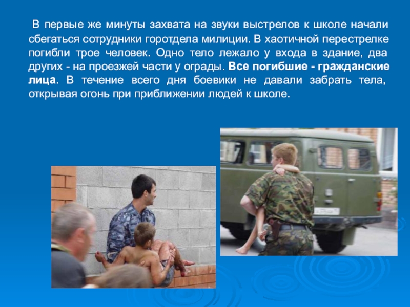 Слайд 7 В первые же минуты захвата на звуки выстрелов к школе начали