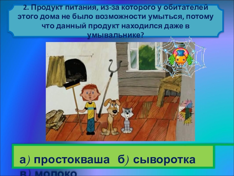 а) простокваша б) сыворотка в) молоко