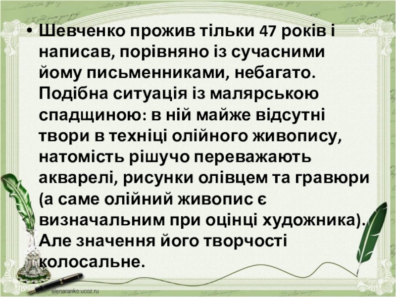 Шевченко прожив тільки 47 років і написав, порівняно із сучасними йому