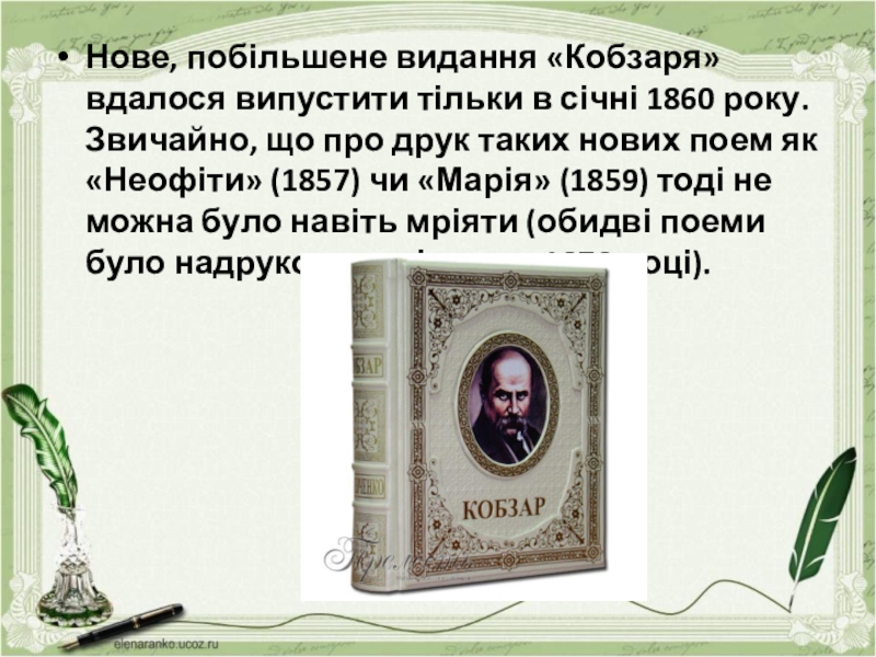 Нове, побільшене видання «Кобзаря» вдалося випустити тільки в січні 1860 року.