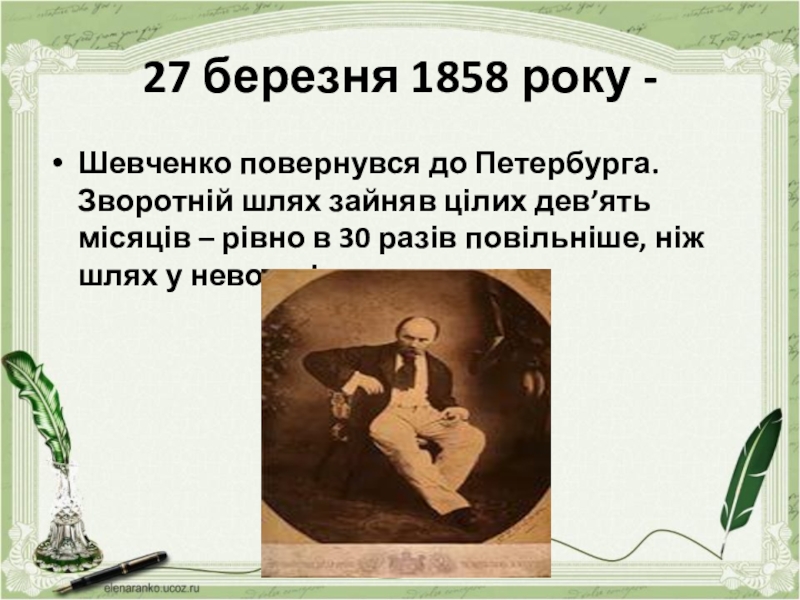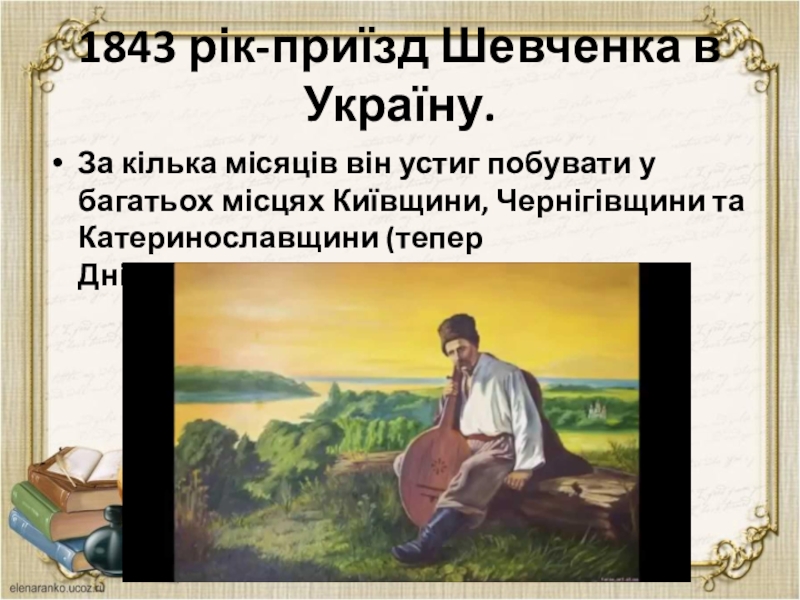 Слайд 221843 рік-приїзд Шевченка в Україну.
