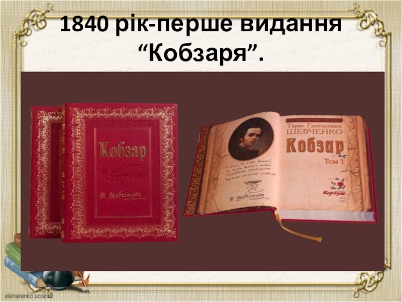Слайд 201840 рік-перше видання “Кобзаря”.