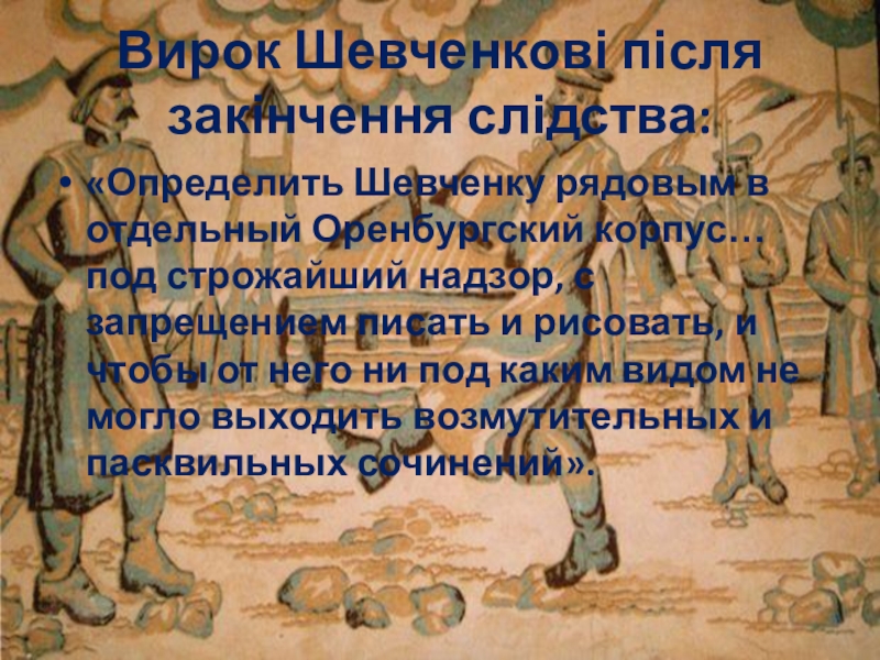 Слайд 32Вирок Шевченкові після закінчення слідства: