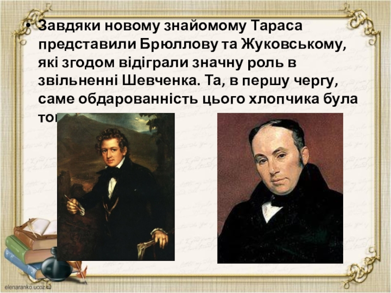 Завдяки новому знайомому Тараса представили Брюллову та Жуковському, які згодом відіграли