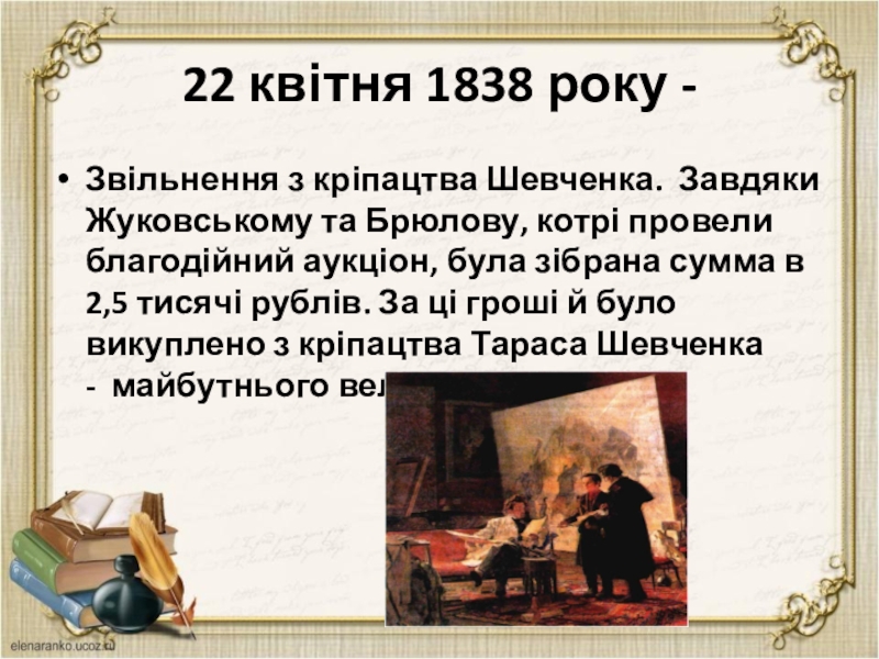 Звільнення з кріпацтва Шевченка. Завдяки Жуковському та