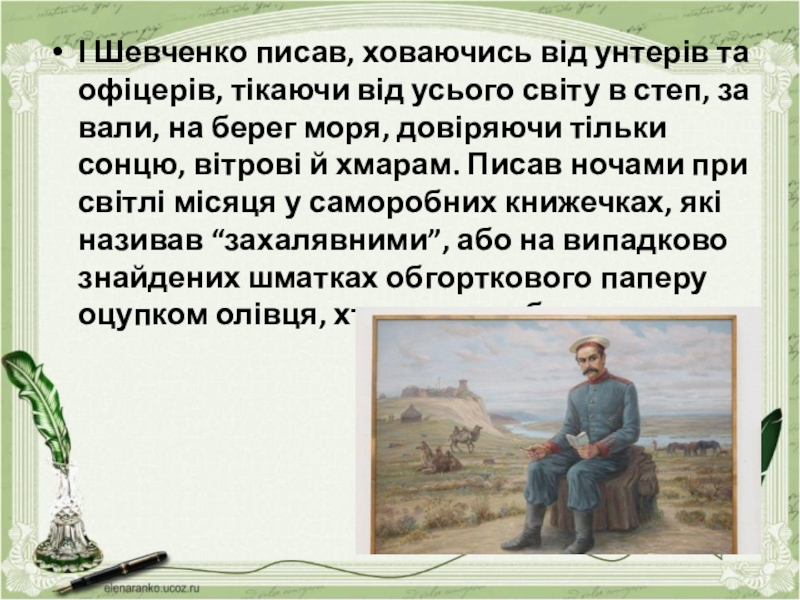 І Шевченко писав, ховаючись від унтерів та офіцерів, тікаючи від усього