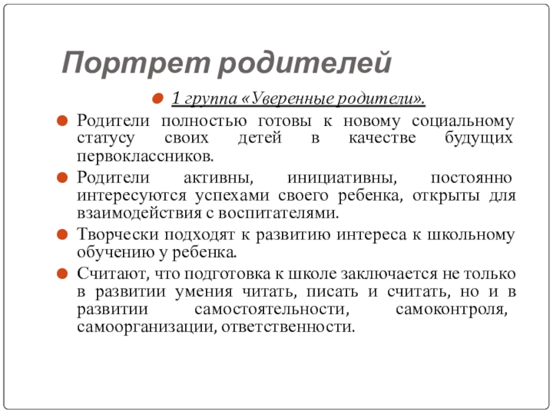 1 группа «Уверенные родители».