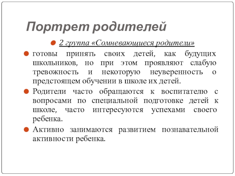 2 группа «Сомневающиеся родители»