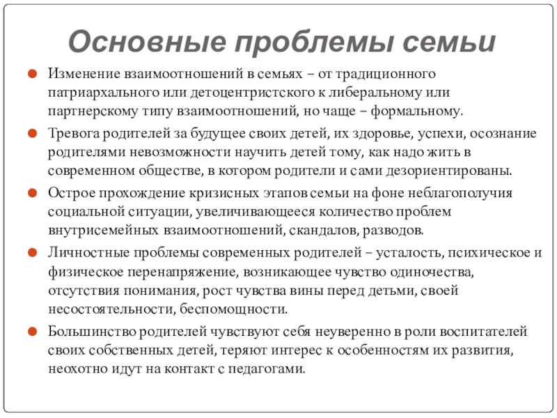 Слайд 6Основные проблемы семьи