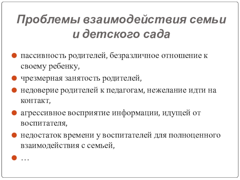 Слайд 10Проблемы взаимодействия семьи и детского сада