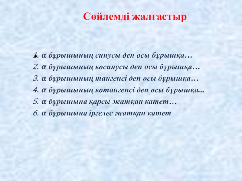 Слайд 1 Тікбұрышты үшбұрыштың сүйір бұрышының синусы,