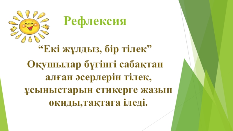 Шығармашылығы жайлы түсініктерін ортаға салады. Оқушылар бүгінгі сабақтан алған білімдерін ортаға салады.
