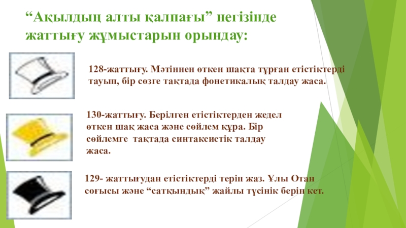 Қара қалпақ- жағымсыз іс-әрекетті әшкерелеу.Қара қалпақ-129 жаттығудан жедел өткен шақты теріп жазып,талдау.