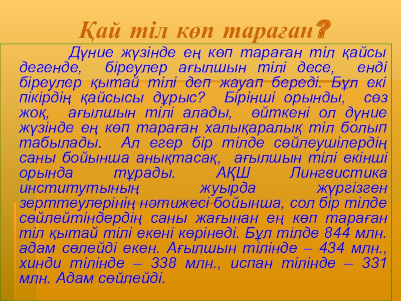 Слайд 4Қай тіл көп тараған?
