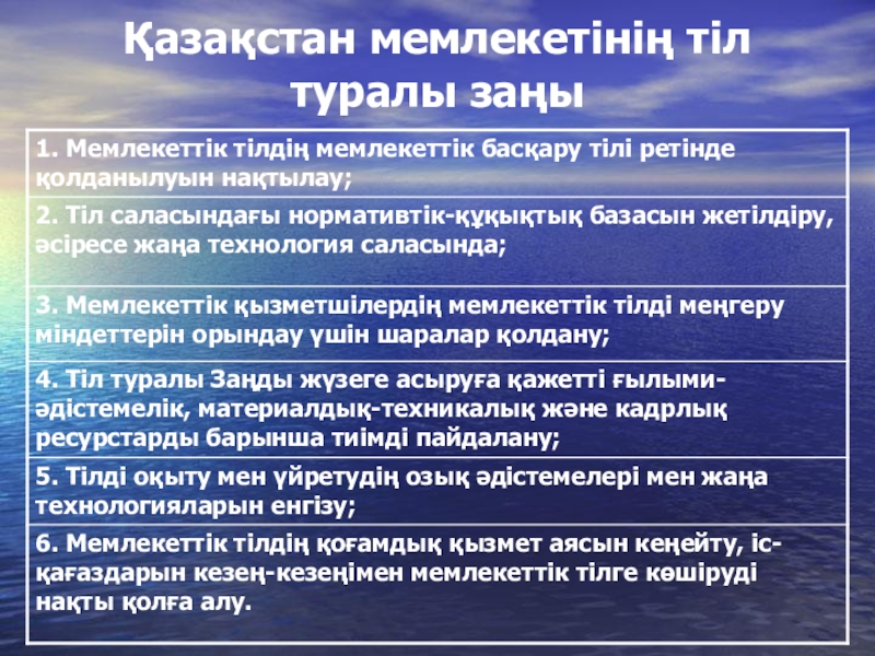 Слайд 2Қазақстан мемлекетінің тіл туралы заңы