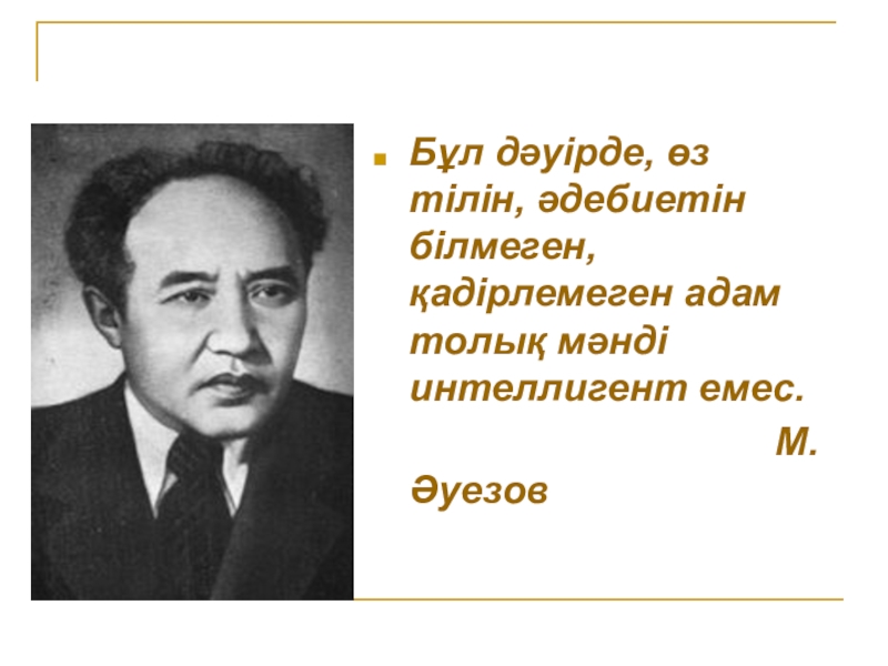 Слайд 10Бұл дәуірде, өз тілін, әдебиетін білмеген, қадірлемеген адам толық мәнді интеллигент