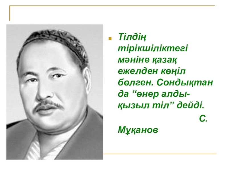 Слайд 11Тілдің тірікшіліктегі мәніне қазақ ежелден көңіл бөлген. Сондықтан да “өнер алды-