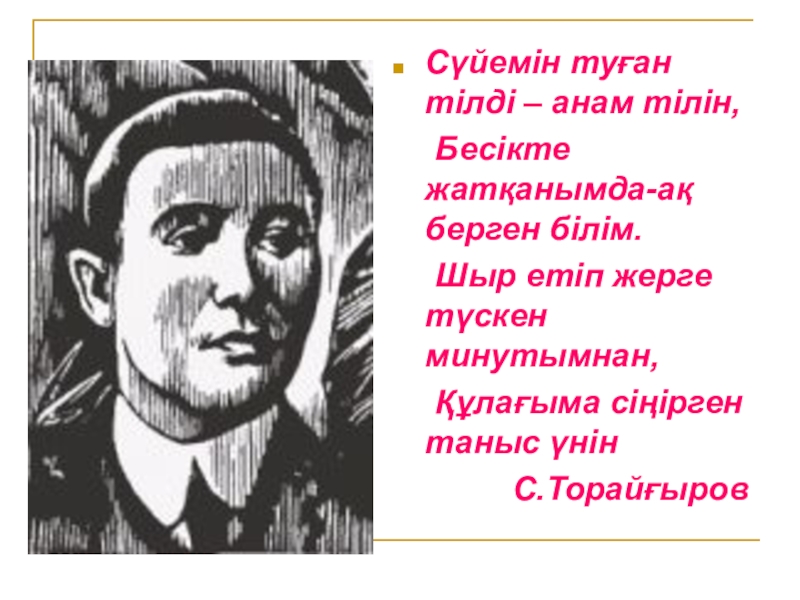 Слайд 13Сүйемін туған тілді – анам тілін,