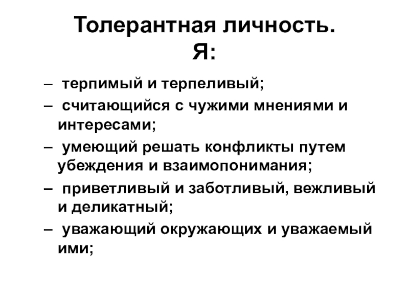 Слайд 10Какими же чертами должен обладать толерантный человек, а какие черты личности