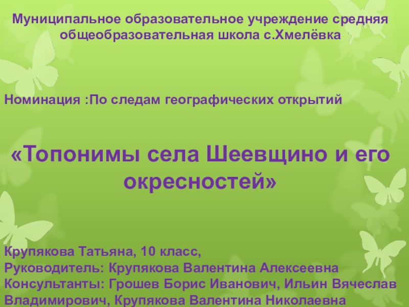 Консультанты: Грошев Борис Иванович, Ильин Вячеслав Владимирович, Крупякова Валентина Николаевна
