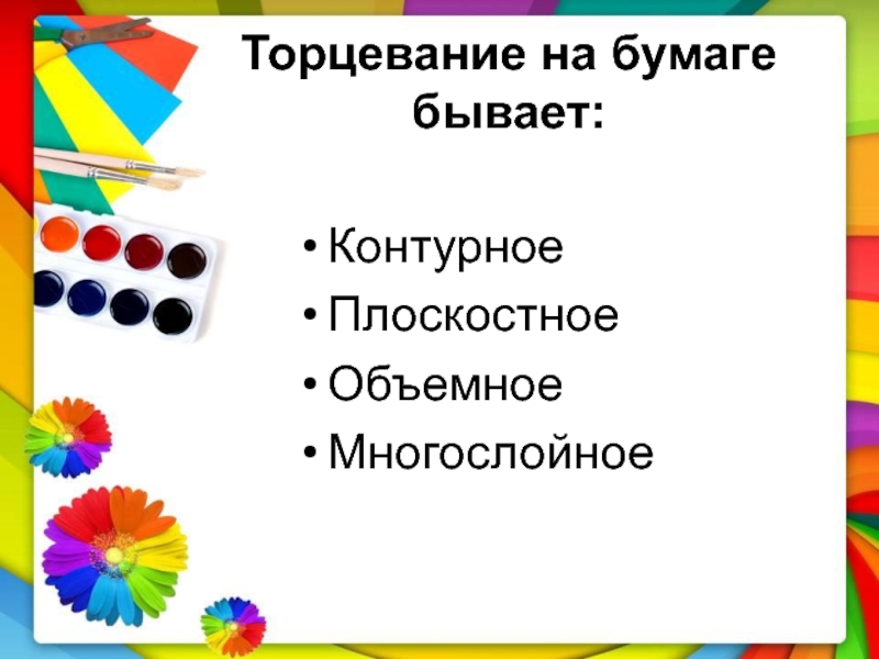 Торцевание на бумаге бывает: КонтурноеПлоскостноеОбъемноеМногослойное