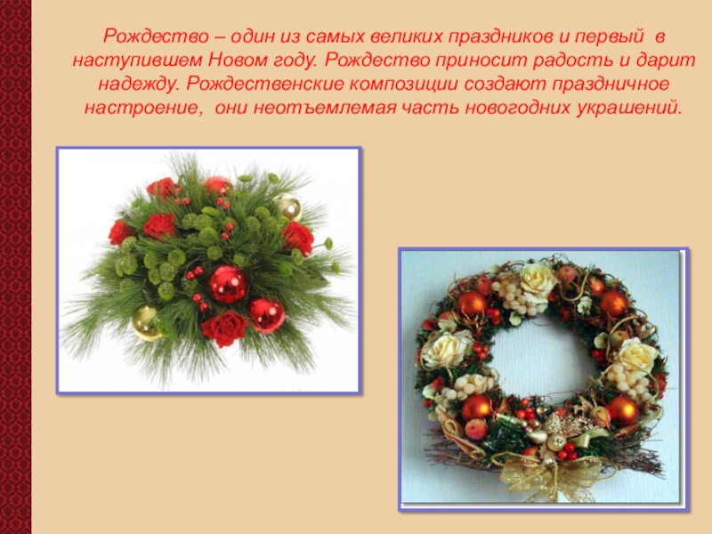 Презентация, доклад на тему Традиции и особенности новогодних и рождественских композиций