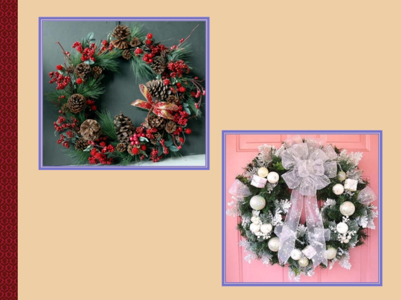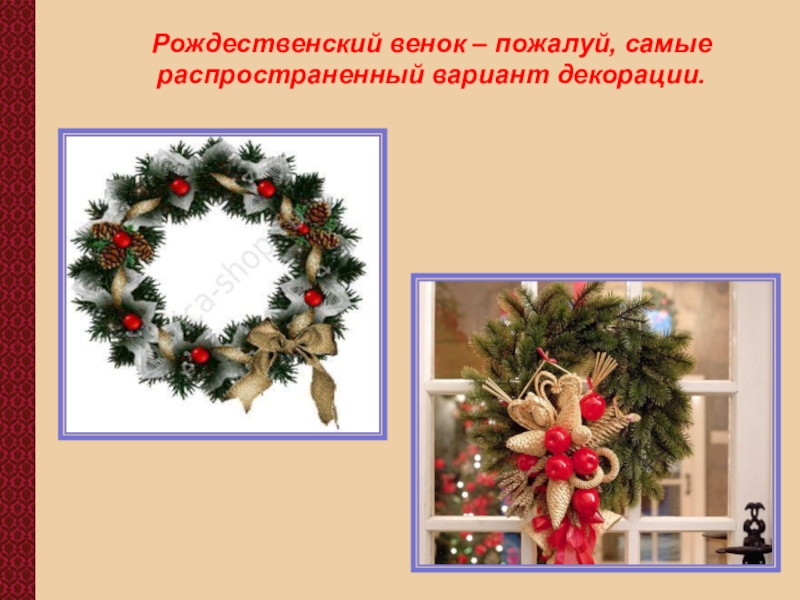 Слайд 14Рождественский венок – пожалуй, самые распространенный вариант декорации.