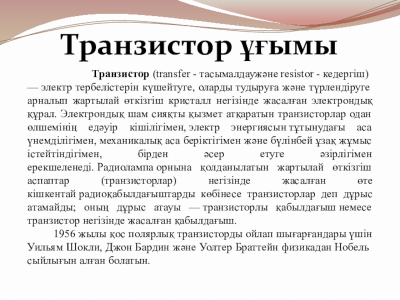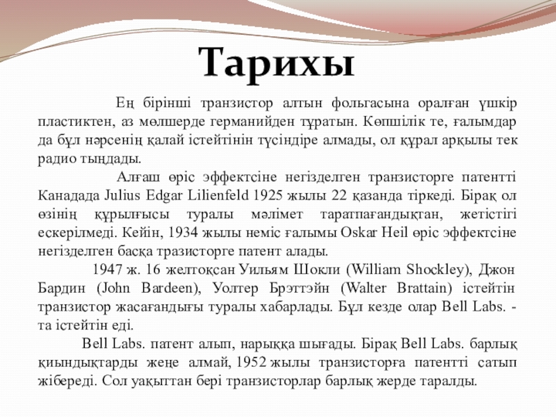 1947 ж. 16 желтоқсан Уильям Шокли (William Shockley), Джон Бардин (John Bardeen), Уолтер Брэттэйн (Walter Brattain) істейтін транзистор жасағандығы туралы хабарлады. Бұл кезде олар Bell Labs. -та істейтін еді.