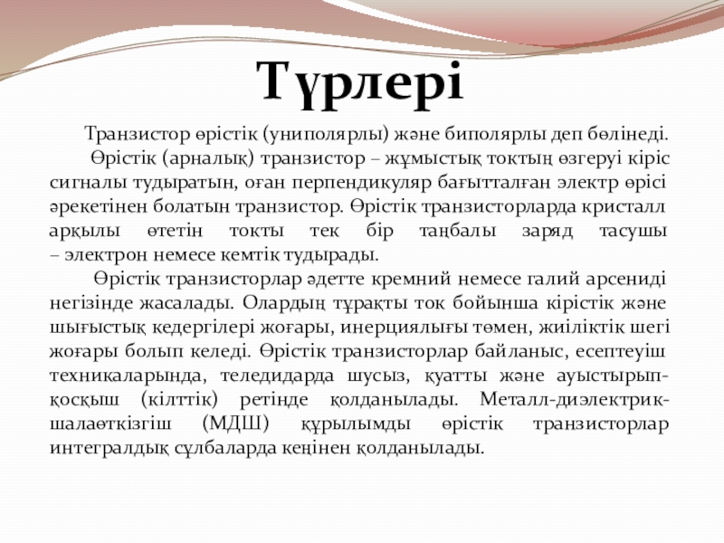 Алғаш өріс эффектсіне негізделген транзисторге патентті Канадада Julius Edgar Lilienfeld 1925 жылы 22 қазанда тіркеді. Бірақ ол өзінің құрылғысы туралы мәлімет таратпағандықтан, жетістігі ескерілмеді. Кейін, 1934 жылы неміс ғалымы Oskar Heil өріс эффектсіне негізделген басқа тразисторге патент алады.