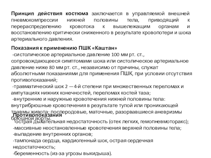 Показания к применению ПШК «Каштан»
