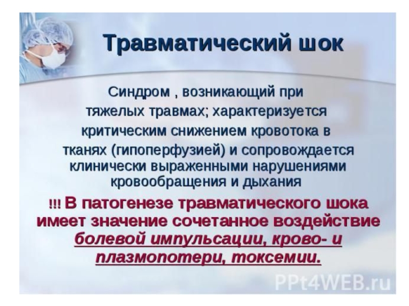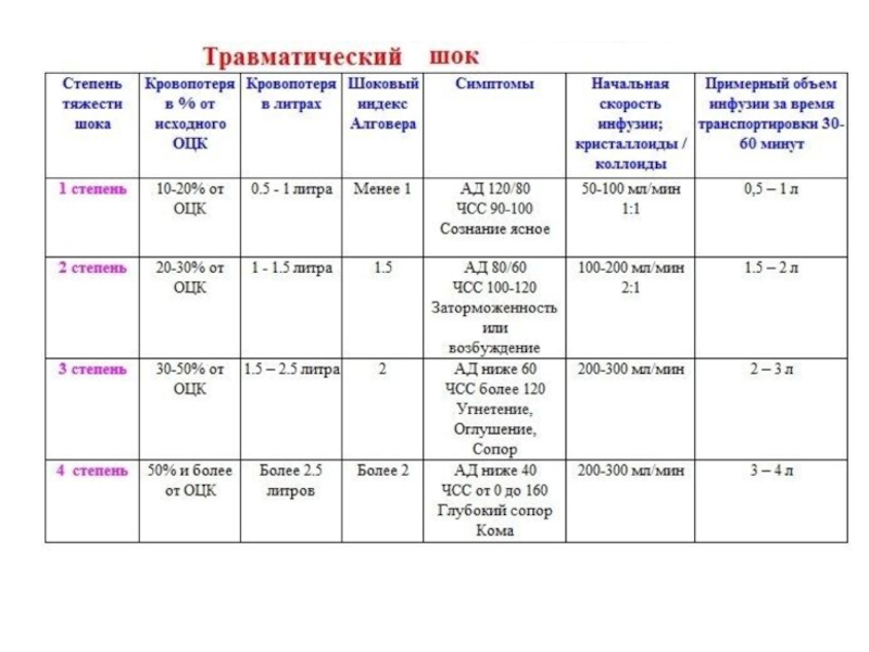 -травматический шок 2 —4-й степени при множественных переломах и ампутациях нижних конечностей, переломах костей таза;
